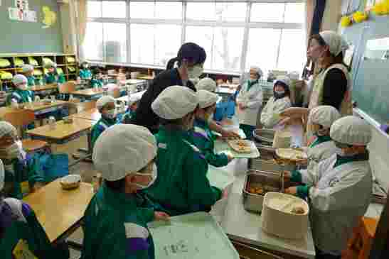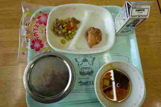 ・1年生の本格的な給食が始まりました。配膳も担任や支援員の先生の手伝いを受けながら,できるだけ自分たちで行いました。一生懸命食べる1年生です。