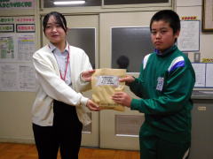 12月8日(月)には、滝沢市社会福祉協議会の職員の方が来校し、福祉委員会の代表が募金を手渡しました。