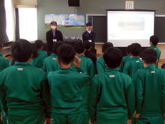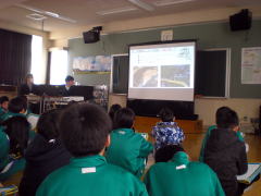 2月12日(木)に,5年生は松尾鉱山出前授業を行いました。授業のテーマは,「松尾鉱山と北上川の清流化対策」でした。社会科の授業で,4大公害病の原因や改善への取組を学んだ子ども達,今回は岩手県環境生活部環境保全課鉱業・水資源担当の職員の方をゲストティーチャーに,身近な地域の公害と対策についての理解を深めました。